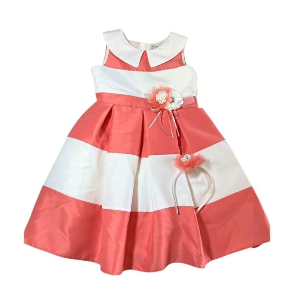 Ροζ-λευκό φόρεμα με λουλούδι & στέκα