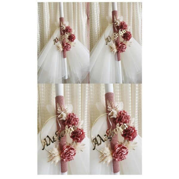Λαμπάδα βάπτισης ” Ρομαντική με Μονόγραμμα “
