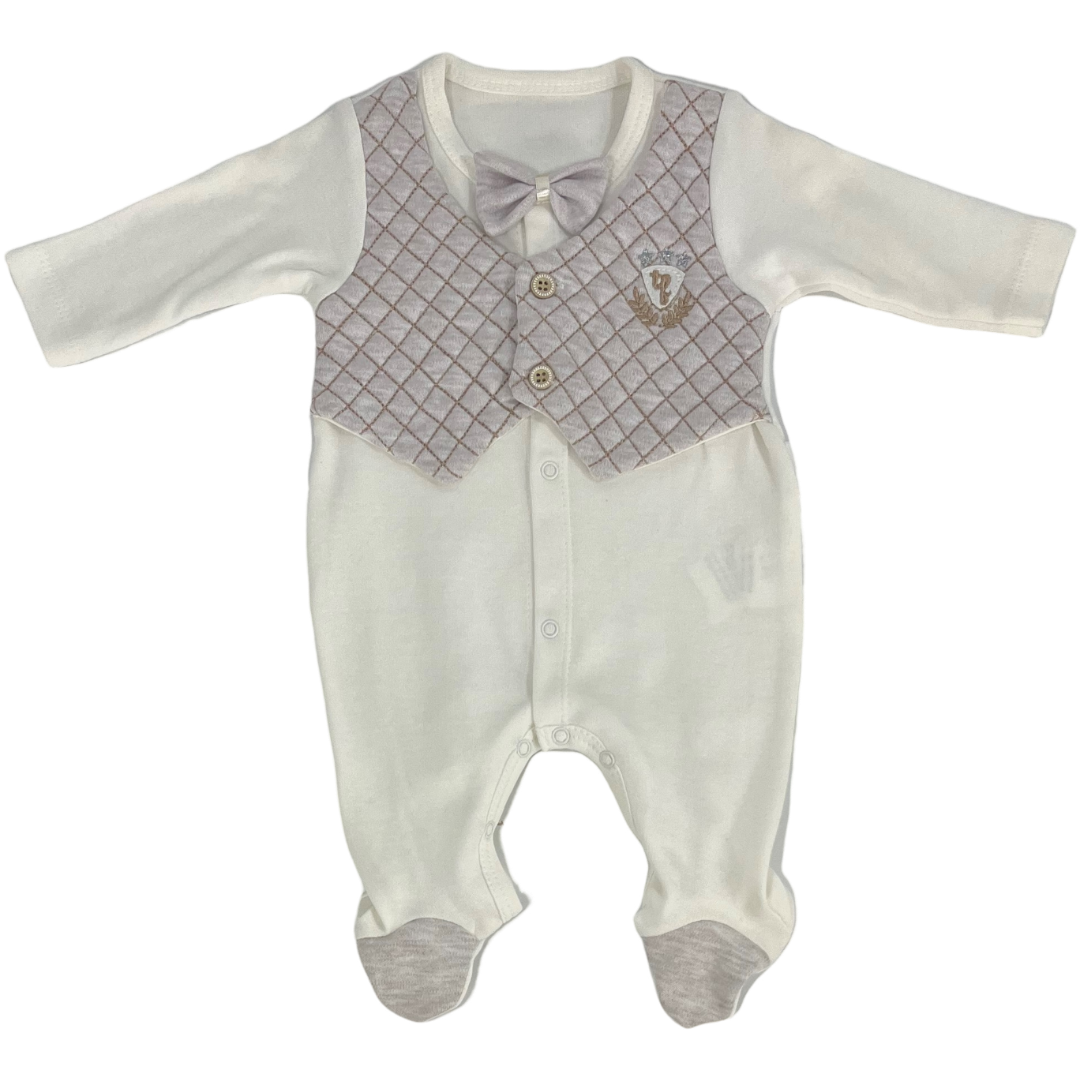Βρεφικό Φορμάκι με Γιλέκο & Παπιγιόν – Εκρού