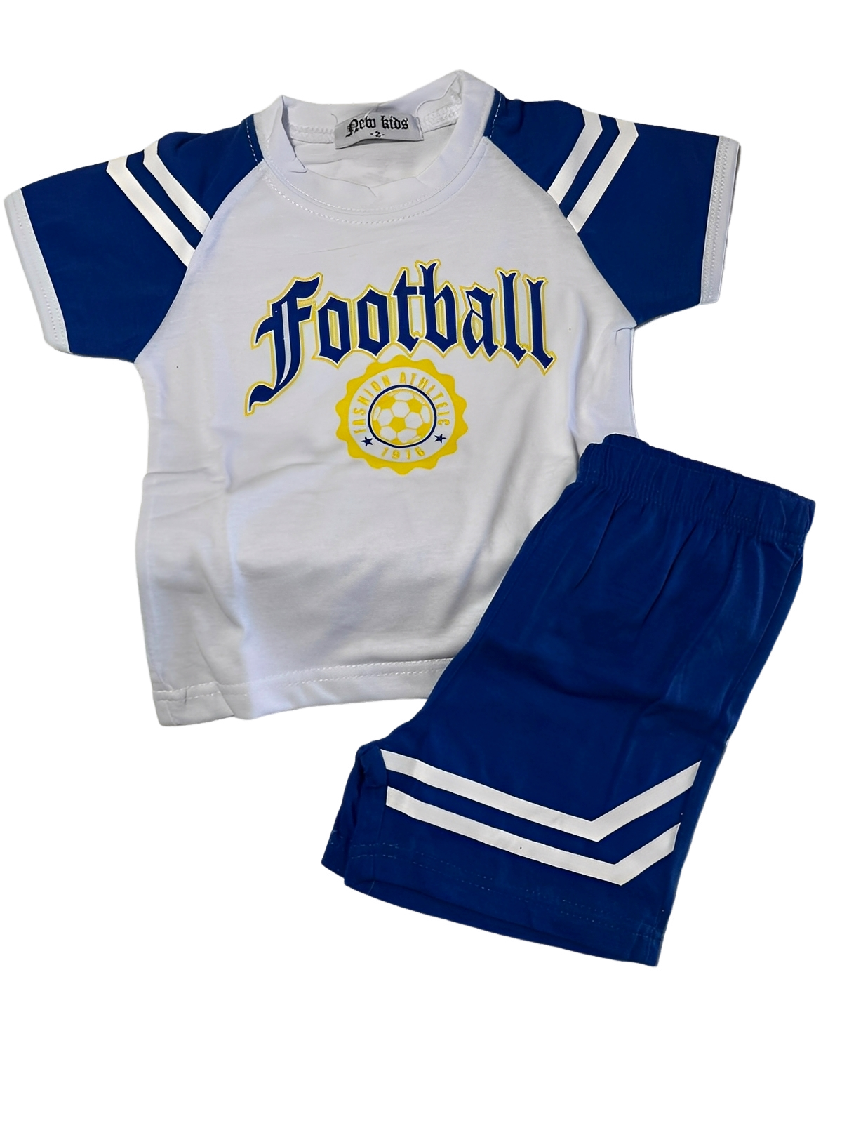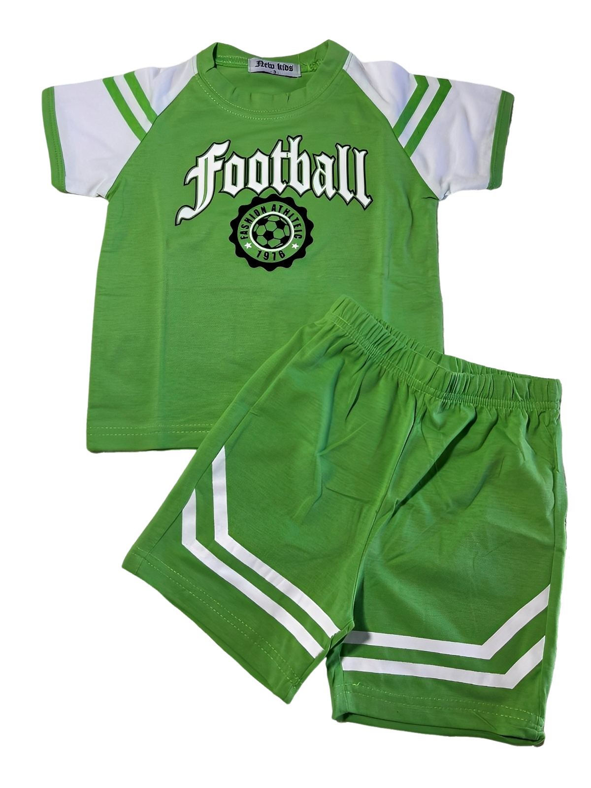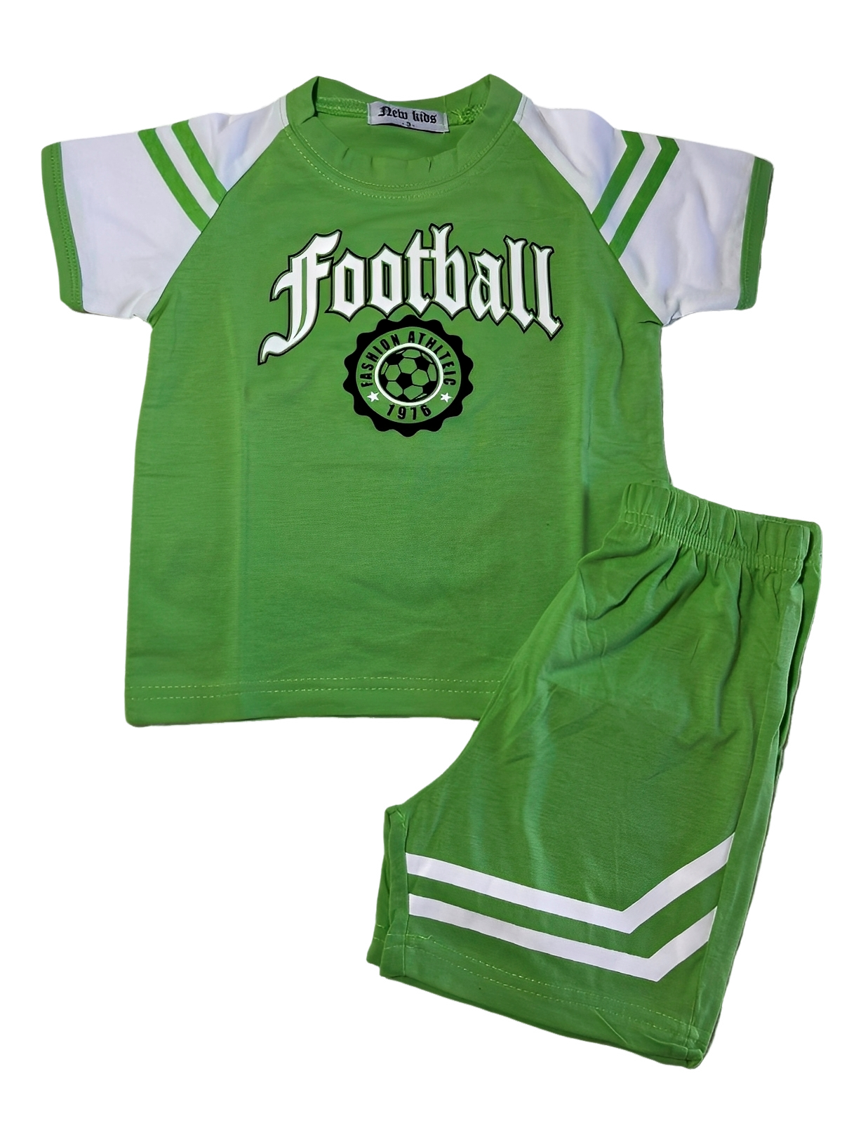 «Στυλάτο καλοκαιρινό σετάκι για άνεση και παιχνιδιάρικο look! Η μπλούζα με το μοντέρνο τύπωμα “Football” και τα ξεχωριστά σχεδιάκια συνδυάζεται ιδανικά με σορτσάκι για καθημερινές εμφανίσεις γεμάτες ενέργεια. Διατίθεται σε τρία υπέροχα χρώματα – μπλε, σιέλ και πράσινο – για να βρείτε αυτό που ταιριάζει καλύτερα στο στυλ σας