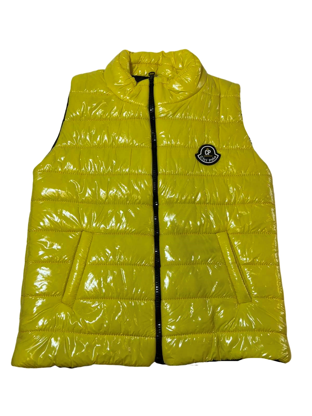 • Αμάνικο φουσκωτό μπουφάν σε κίτρινο χρώμα