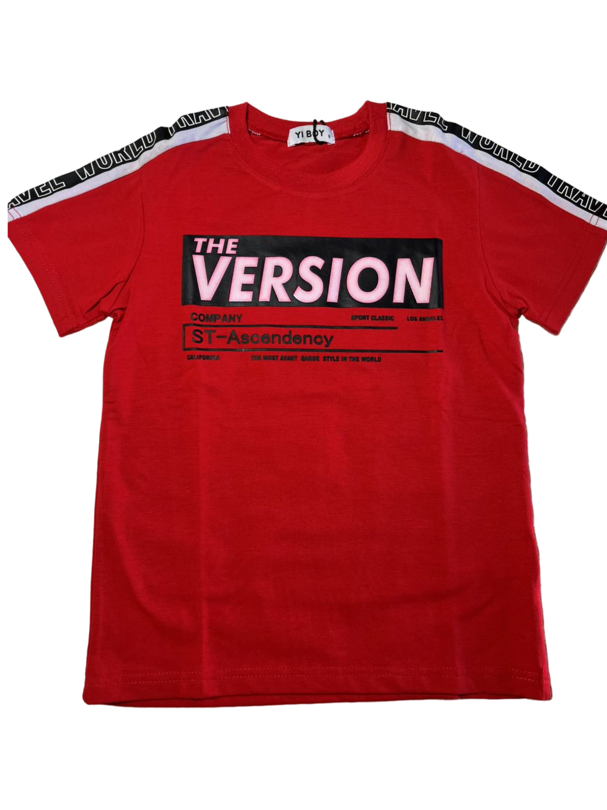 • Κοντομάνικη μπλούζα σε κόκκινο με άσπρες και μαύρες λεπτομέρειες