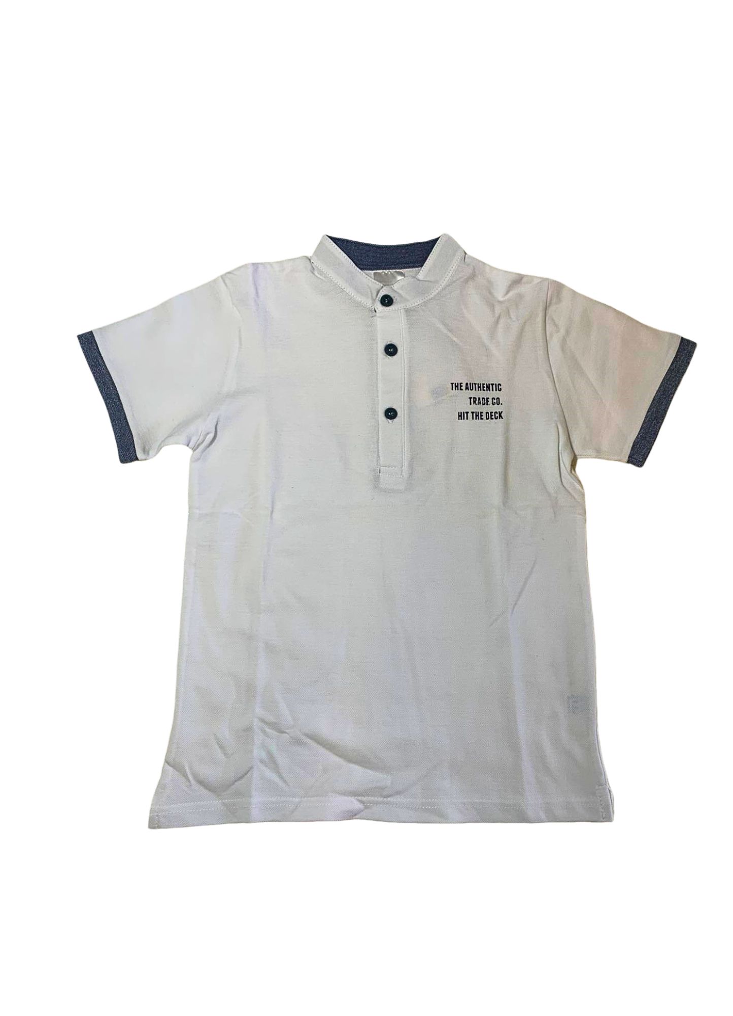 Αναβαθμίστε το καθημερινό στυλ του μικρού σας με αυτή τη μοντέρνα παιδική μπλούζα πόλο, σε κλασικό λευκό χρώμα με κομψές μπλε λεπτομέρειες. Το σχέδιο διαθέτει κοντό μανίκι και τριπλή κουμπότρυπα στο μπροστινό μέρος, προσφέροντας άνεση και μοντέρνα εμφάνιση.