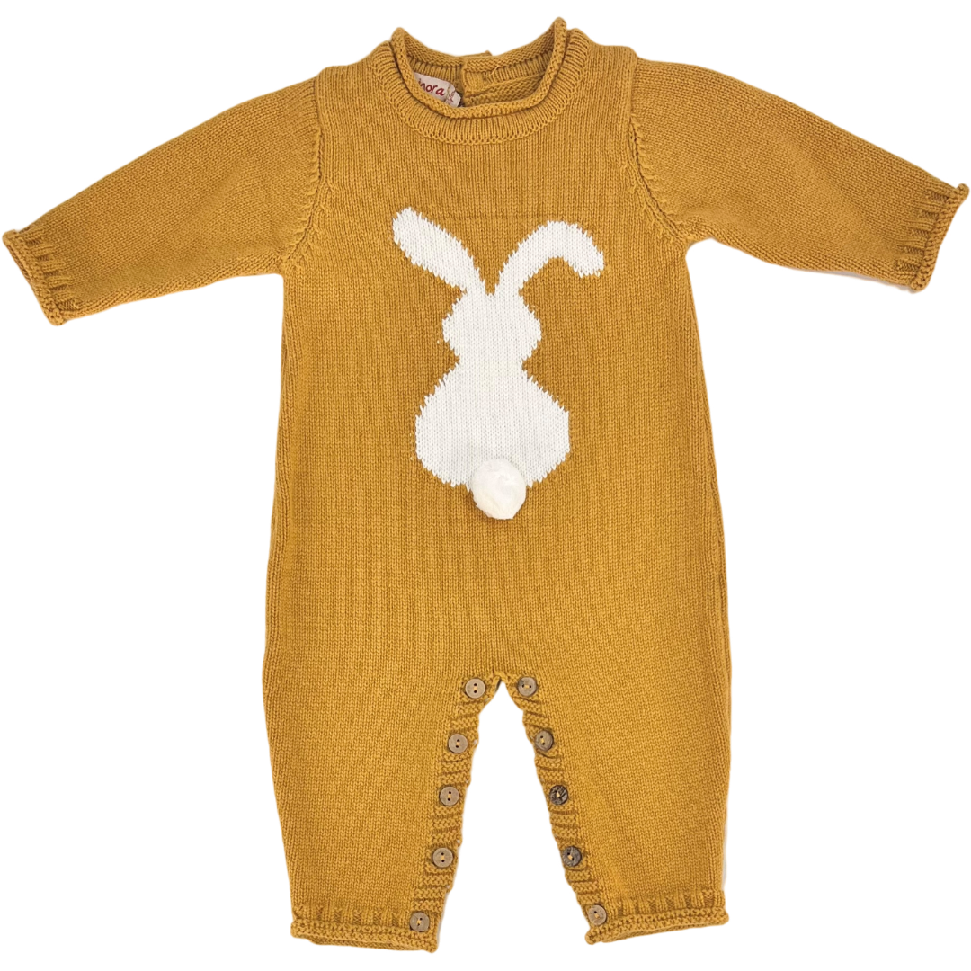 Ένα μοναδικό πλεκτό βρεφικό φορμάκι που συνδυάζει άνεση, ζεστασιά και χαριτωμένο design. Σε υπέροχη μουσταρδί απόχρωση, με γλυκό σχέδιο “Λαγουδάκι”και διακριτική 3D λεπτομέρεια στην ουρίτσα, αποτελεί μια ξεχωριστεί επιλογή για τις πρώτες εμφανίσεις του μωρού σας.