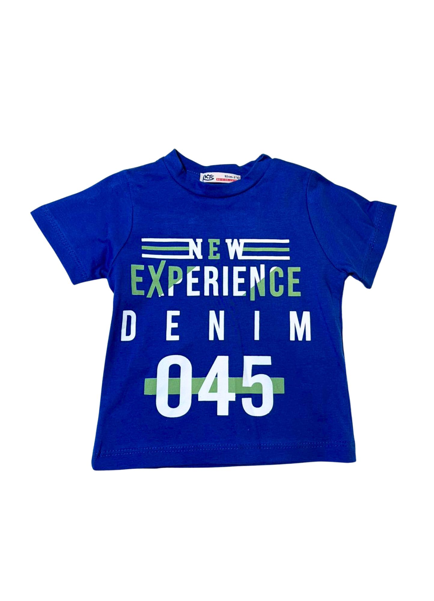 • Κοντομάνικη μπλε μπλούζα με σχέδιο