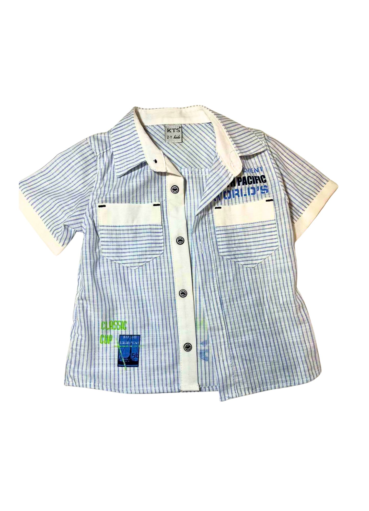 • Κοντομάνικο λευκό πουκάμισο με μπλε ρίγες